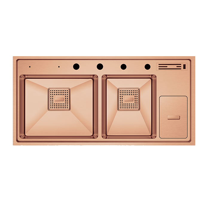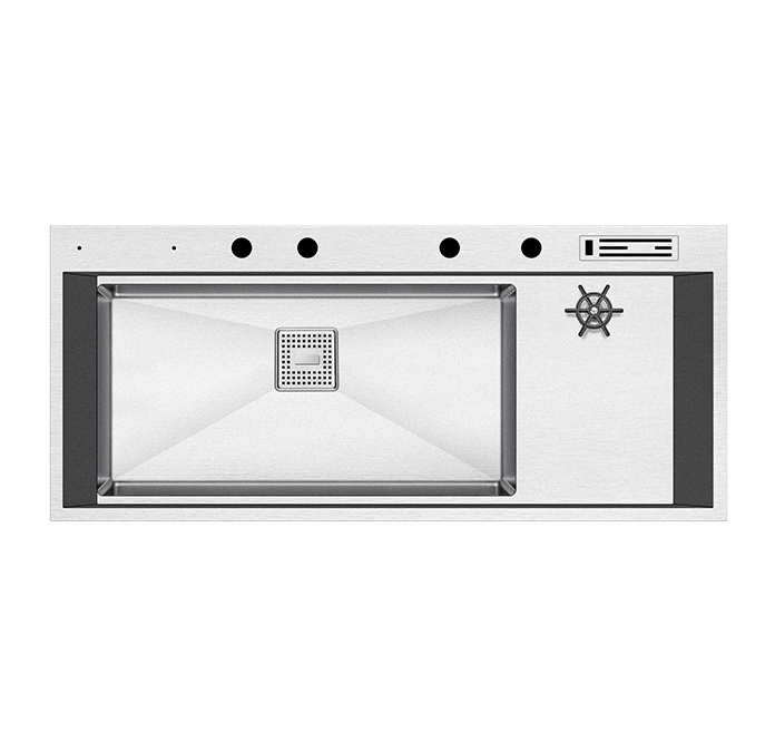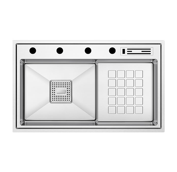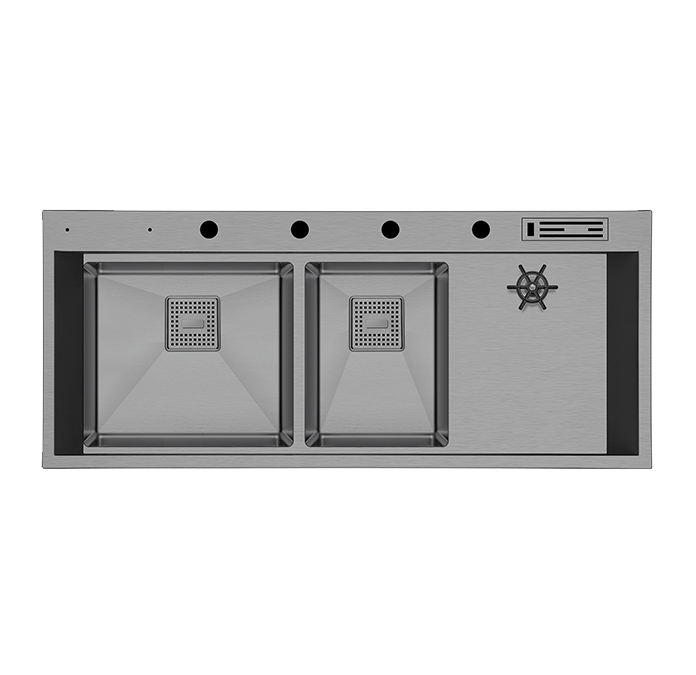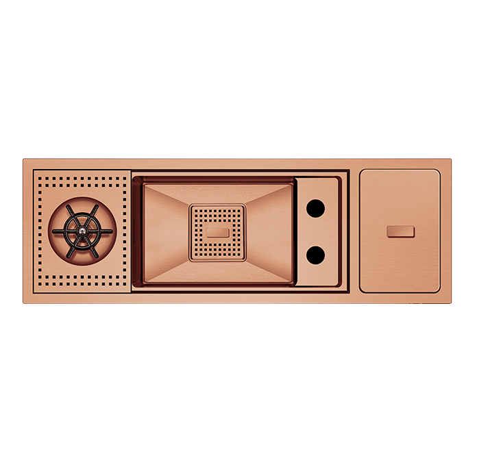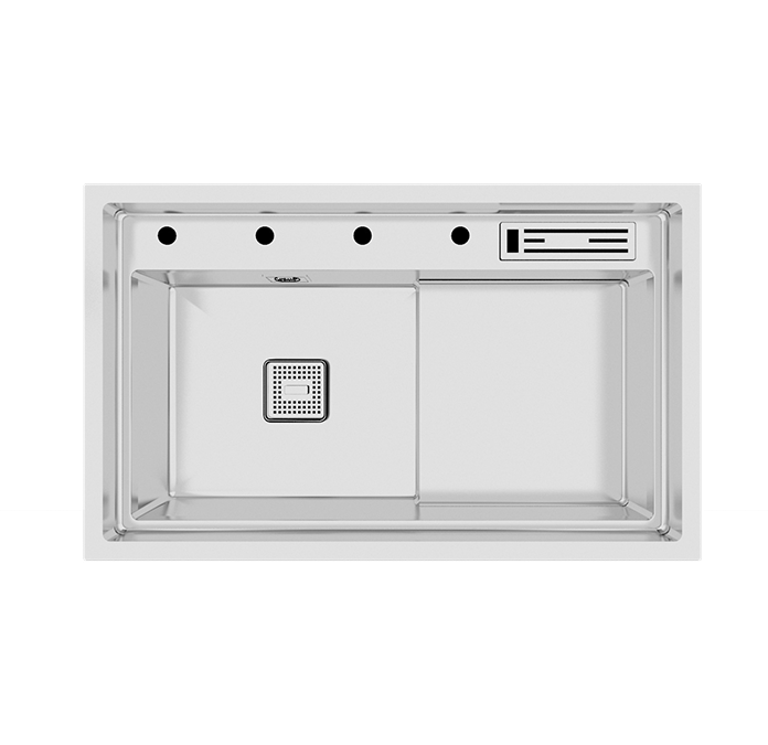 Üzerinde bulunan 4 delik, sabunluk, mutfak bataryası, batarya spirali ve kumandalı sifon için tasarlanmıştır. Spiralsiz bir mutfak bataryası tercih edildiğinde, deliklerin kapatılması için tıpa opsiyonu mevcuttur. Geniş iç hacmi ve her türlü kaplama seçeneği ile Lusso Serisi’nin zenginliğini yansıtır.