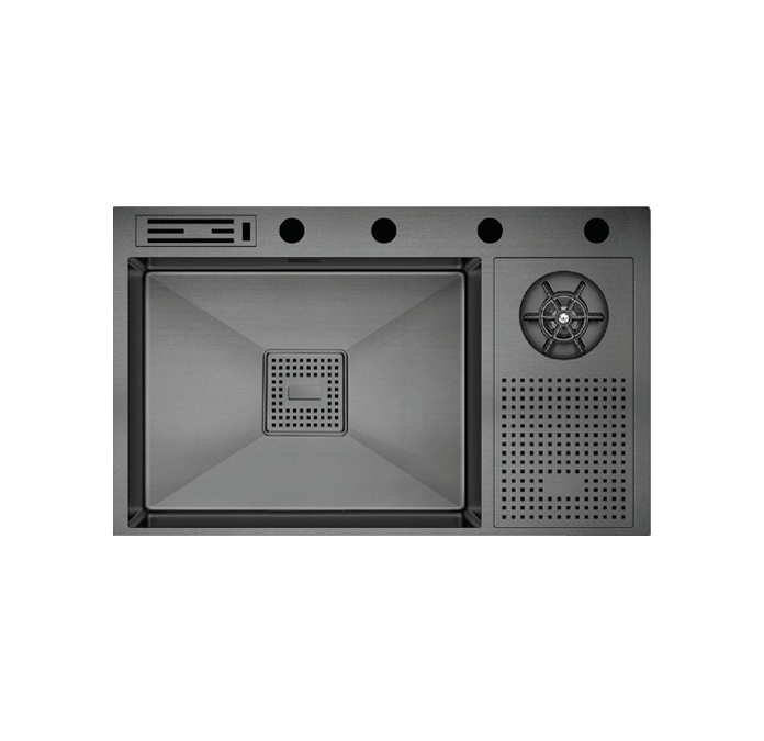 Evye ile birlikte hediye edilen çelik süzgeç, çelik sebzelik süzgeç, katlanabilir tel ızgara, kesme tahtası, tahtalık ve sabunluk, mutfakta işlerinizi daha pratik hale getirir. 4 delikli tasarımı, sabunluk, mutfak bataryası, batarya spirali ve kumandalı sifon için özel olarak düşünülmüştür. Bu lüks evye modeli, geniş iç hacmi ve fonksiyonel detaylarıyla hem estetik hem de dayanıklılık sunar.