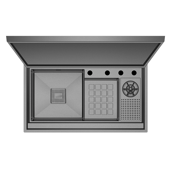 Evyede bulunan 4 delik, sabunluk, mutfak bataryası, batarya spirali ve kumandalı sifon için özel olarak tasarlanmıştır. Spiralsiz mutfak bataryası tercih edilirse, deliklerin kapatılması için tıpa opsiyonu sunulur. Çöp kovası ve bıçaklık gibi özel detaylar, Lusso 1060’ı hem estetik hem de fonksiyonel bir seçenek haline getirir.