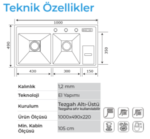 - Farklı tezgah malzemeleriyle sorunsuz uygulanır.