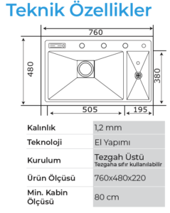 - Farklı tezgah malzemeleriyle sorunsuz uygulanır.