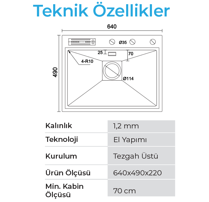 - Tezgah üzerindeki su ve kırıntılar doğrudan evyeye çekilebilir.