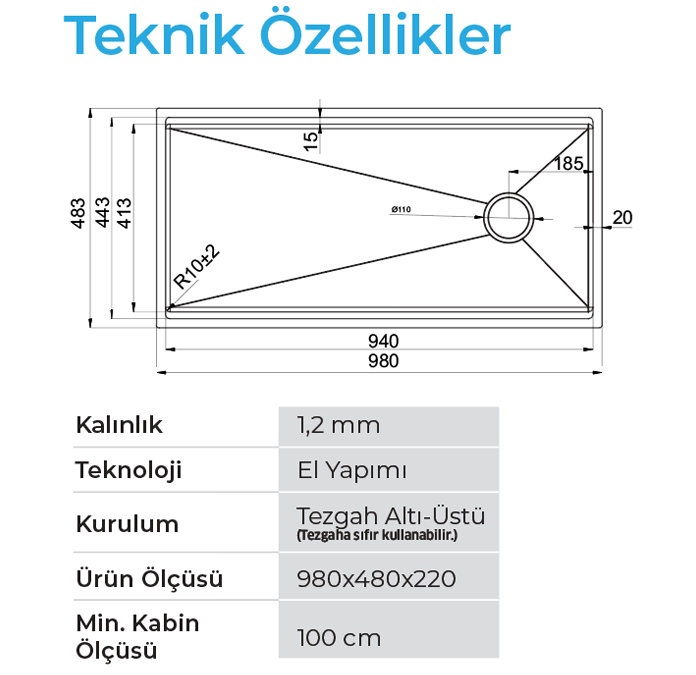 - Mevcut mutfaklarda tadilat gerektirmeden tercih edilebilir.