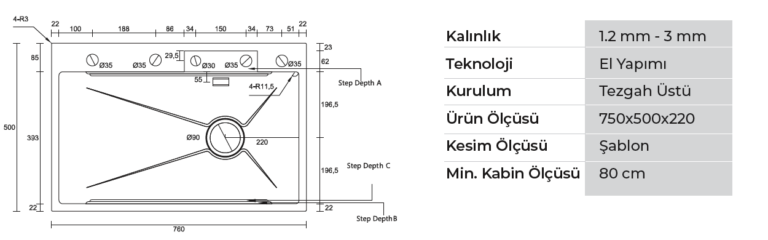 - Farklı tezgah malzemeleriyle sorunsuz uygulanır.