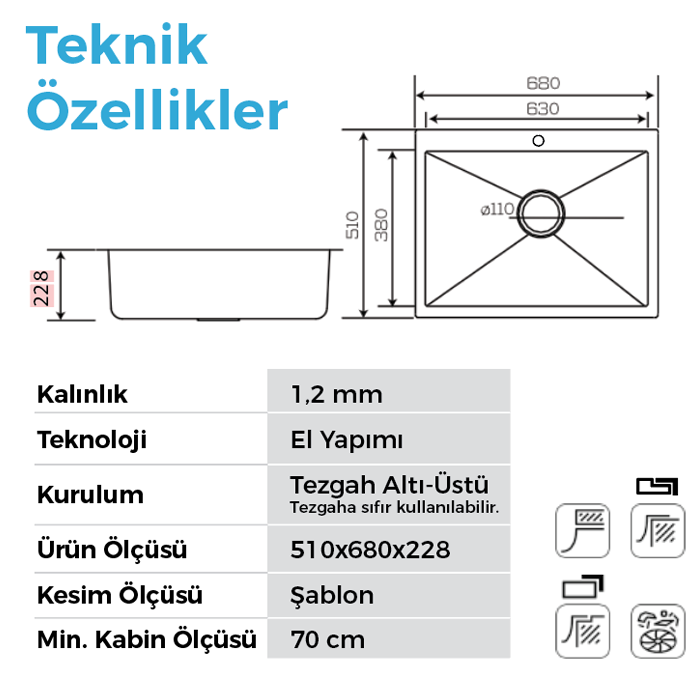 - Farklı tezgah malzemeleriyle sorunsuz uygulanır.