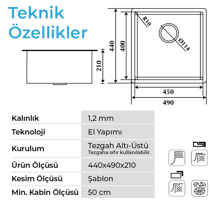 - Farklı tezgah malzemeleriyle sorunsuz uygulanır.