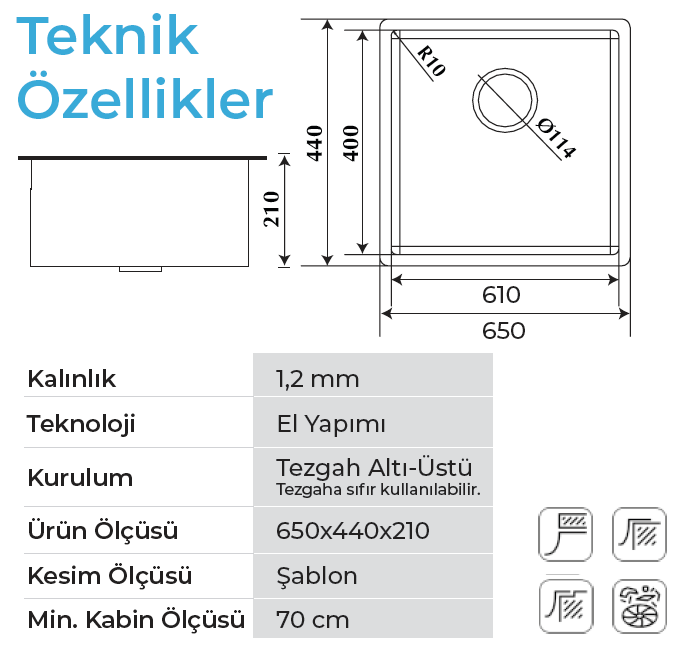 - Farklı tezgah malzemeleriyle sorunsuz uygulanır.