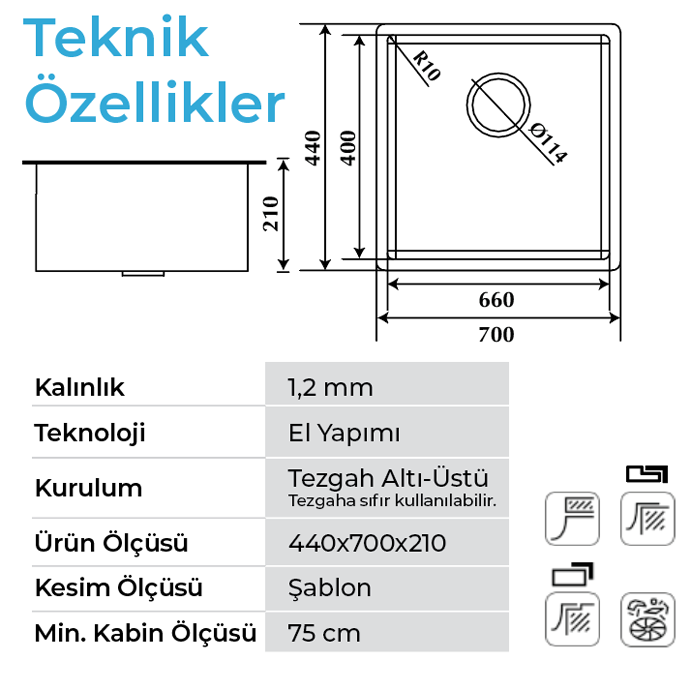 - Mevcut mutfaklarda tadilat gerektirmeden tercih edilebilir.