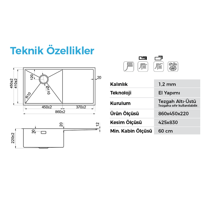 - Farklı tezgah malzemeleriyle sorunsuz uygulanır.