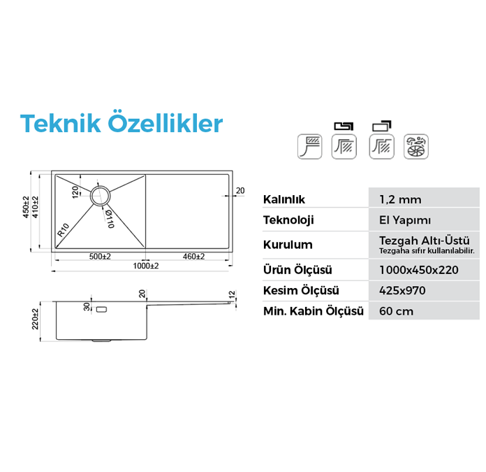 - Farklı tezgah malzemeleriyle sorunsuz uygulanır.