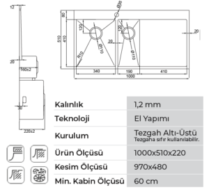 - Farklı tezgah malzemeleriyle sorunsuz uygulanır.